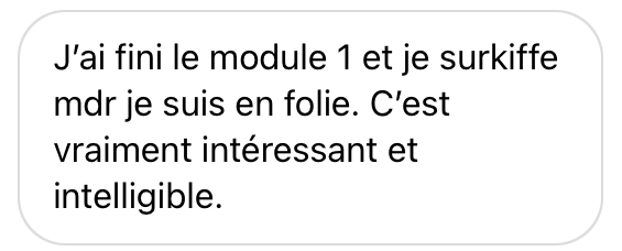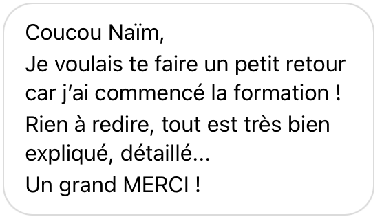 ✅ La formation est garantie : tu peux regarder un module de formation en entier. Si ça ne te convient pas, tu peux demander le remboursement sans justification. Après vérification, je m'engage à te rembourser dans les 72h.